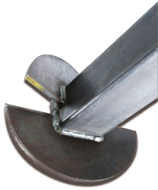テコットパイル工法は、切り欠きを施した鋼管に2枚の半円形鋼板の 羽根と掘削刃を鋼管に溶接接合したものを、回転させることによって地盤中に貫入させ、これを杭として利用する技術です。